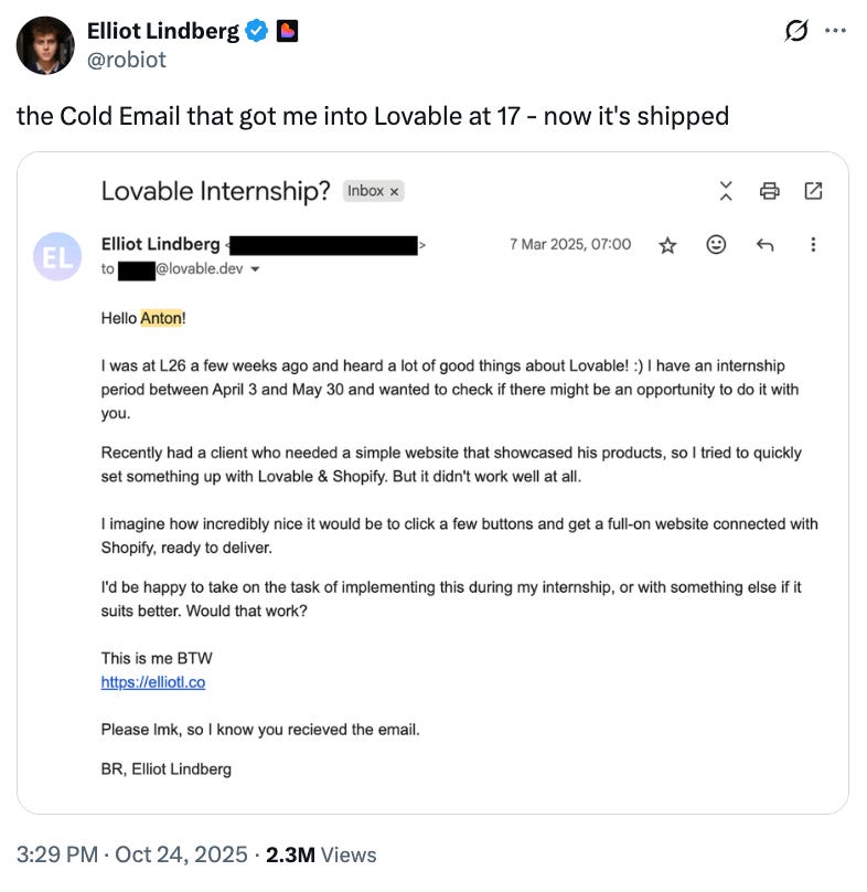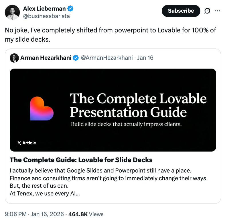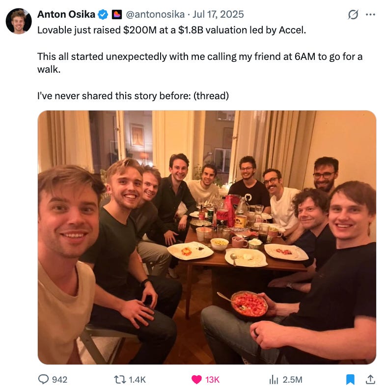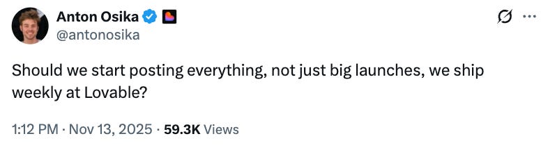 It’s actually not just Anton, the whole team is encouraged to share. Its one thing that a post comes from the Lovable account, but so much more relatable when its a real human posting.