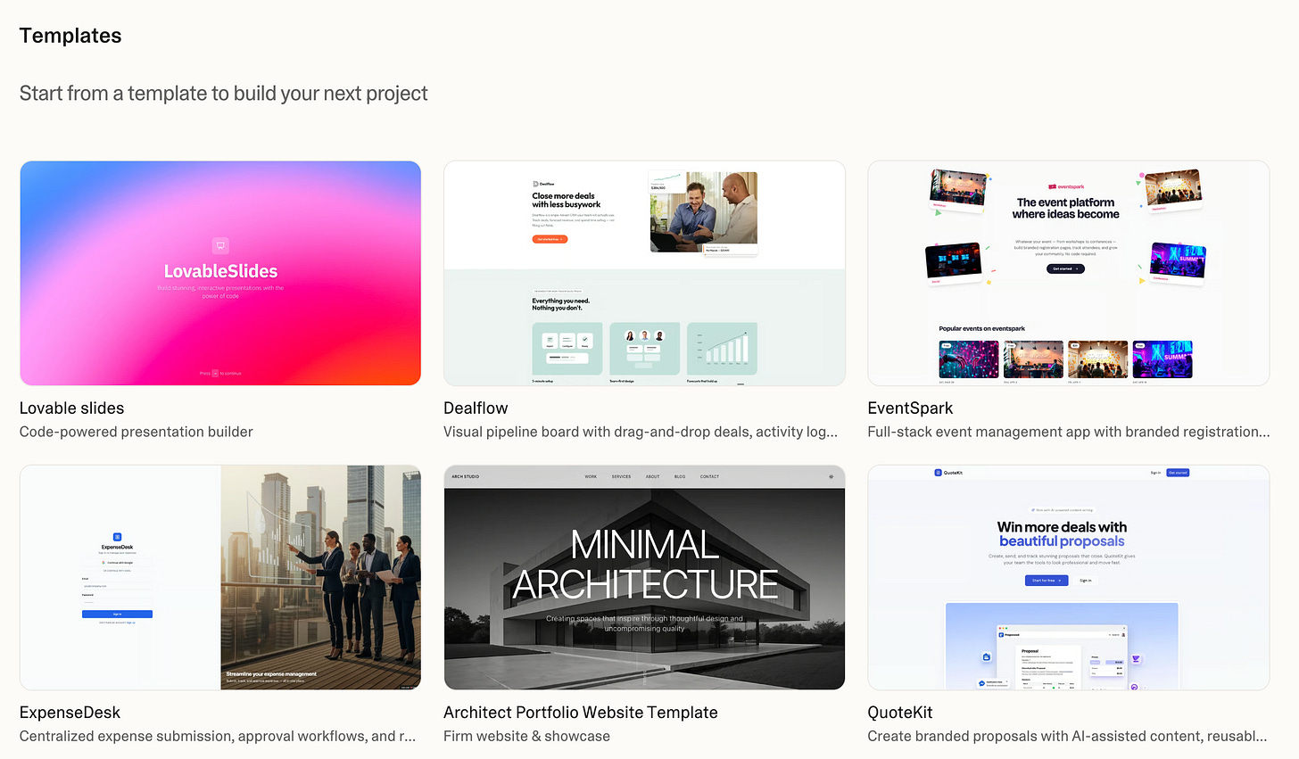 Lovable is an AI app builder. You describe what you want to build in plain English, and it builds it. No coding required.