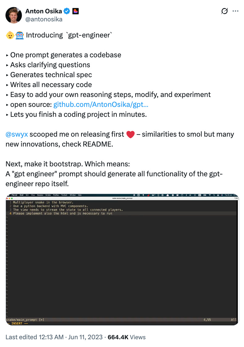 Anton built GPT Engineer as an open-source project in June 2023 and it got +50k GitHub stars and built a decent following, much before a single paying customer. They then launched the product in November 2024 and the distribution converted fast.