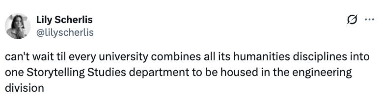 That’s all for this week - I’ll surely be thinking more about storytelling. My next post will be somewhat of a year analysis, possibly of this newsletter. I’m committing to it with this.